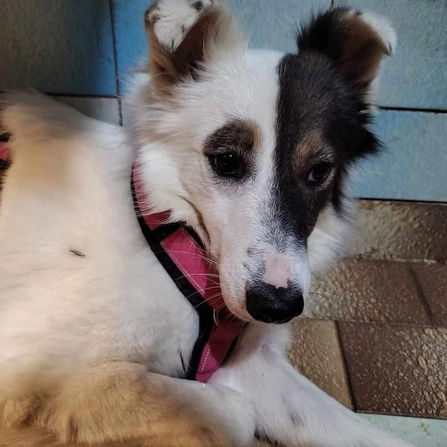 Aristo, ein bildhübscher Hundejunge, der ca. 2020 geboren ist. Er zeigt sich im Erstkontakt misstrauisch. Sicherlich hat er bisher in seinem Leben nicht nur Gutes erlebt, sodass Menschen erstmal skeptisch gegenüber getreten wird.